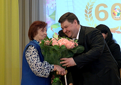 Легендарный директор Климовской средней школы №5 на протяжении 35 лет. Почётный гражданин Климовска Эда Петровна Власова в день рождения поздравления принимает от родных, близких и, конечно, любимых учеников, среди которых и глава округа Николай Пестов.