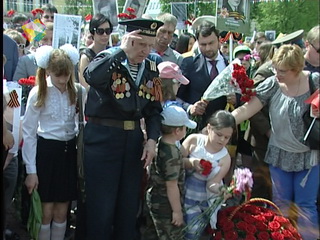 На площади славы у вечного огня собрались все поколения подольчан. И те, кто помнит события 75-летней давности, и те, для кого война - это рассказы стариков и страницы школьных учебников. Но все без исключения склоняют головы перед подвигом советского народа.