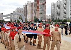 Триколор развернули на недавно открытом бульваре 65-летия Победы в микрорайоне Кузнечики. Участие во флешмобе приняли школьники и юнармейцы, представители молодежных и общественных организаций.